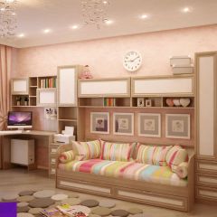 Состоит из: стола-книжки с 2-мя выдвижными ящиками и шкафом. Изделие симметричное.