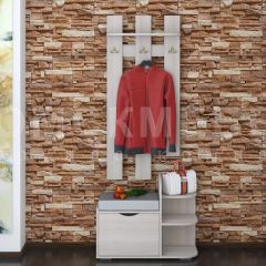 Представляет собой небольшую, компактную и функциональную прихожую. Она состоит из двух модулей – вешалки с крючками и тумбы-банкетки. Последняя включает в себя три полочки для различных вещей, ящика и мягкого сидения. Выпускается прихожая в двух цветах: корпус – ясень шимо светлый или ясень шимо темный, мягкий элемент – ткань и винилискожа серого цвета.