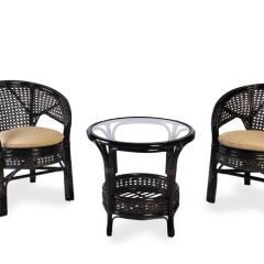 Комплект мебели Пеланги 02/15 включает в себя: 2 кресла и столик с красивым плетением снизу и полочкой, съемные подушки из материала улучшенного качества.