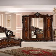 Мебель для спальни «Джоконда» не отличается прямыми линиями, здесь все очертания имеют криволинейные формы, преобладает архитектурный декор со сложными спиралями и витыми колоннами. Это дворцовый стиль, который использовали люди высшего класса в своих домах.